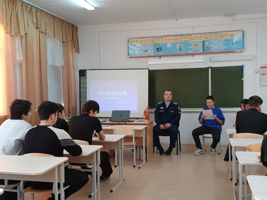 В филиале МАОУ «Аромашевская СОШ им. В.Д. Кармацкого» Новопетровская СОШ прошла «Классная встреча» с курсантом Рязанского гвардейского высшего воздушно — десантного училища имени генерала армии В.Ф. Маргелова Кирюшиным Вадимом Александровичем. Вадим Александрович поделился с ребятами плюсами службы в данном училище, рассказал о критериях при поступлении, ребятам была полезна и интересна Классная встреча.