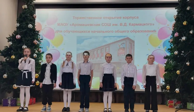 12 января 2026 года в режиме телемоста Губернатор Тюменской области Александр Моор открыл новый корпус начальной школы МАОУ «Аромашевская СОШ им. В.Д. Кармацкого» по адресу: с. Аромашево, ул. Декабристов, 12. Сегодня к обучению в нём приступили ребята 1 — 4 классов. В школе созданы современные условия. Александр Викторович поздравил педагогов, учеников, родителей и пообщался с ними.
