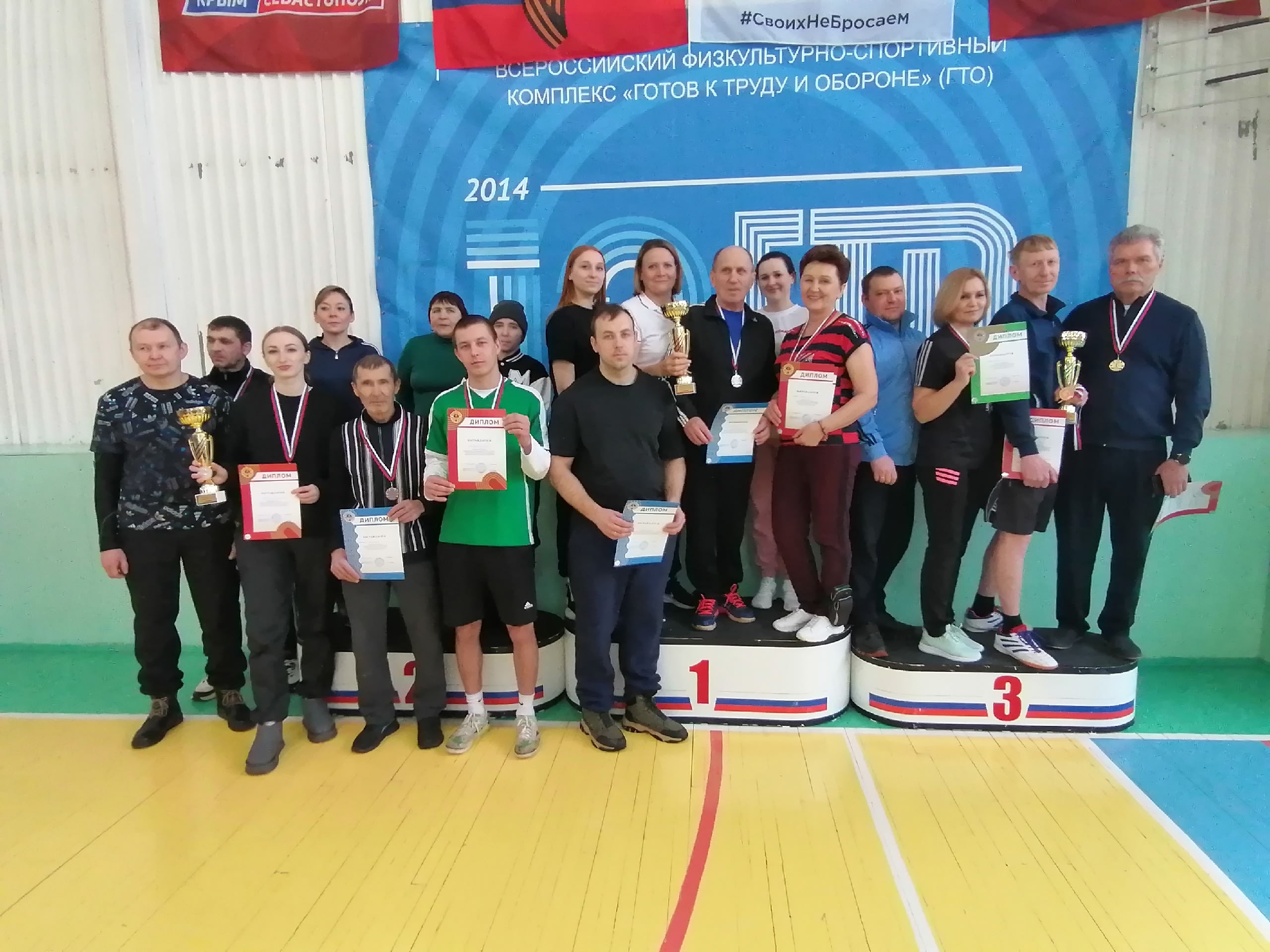 А в номинации «Семья со знаком ГТО» отмечены Крымовы Сергей, Светлана, Илья, Лариса Александровна. Участники областного фестиваля ВФСК «Готов к труду и обороне» среди семейных команд, Призёры соревнований в личном первенстве в своих возрастных группах бабушка Лариса Александровна заняла 1 место, мама Светлана заняла 2 место, сын Илья занял 3 место. А глава семьи Сергей в своей возрастной группе занял 1 место, а также был награждён в личном первенстве в многоборье ГТО среди мужчин за 2 место.